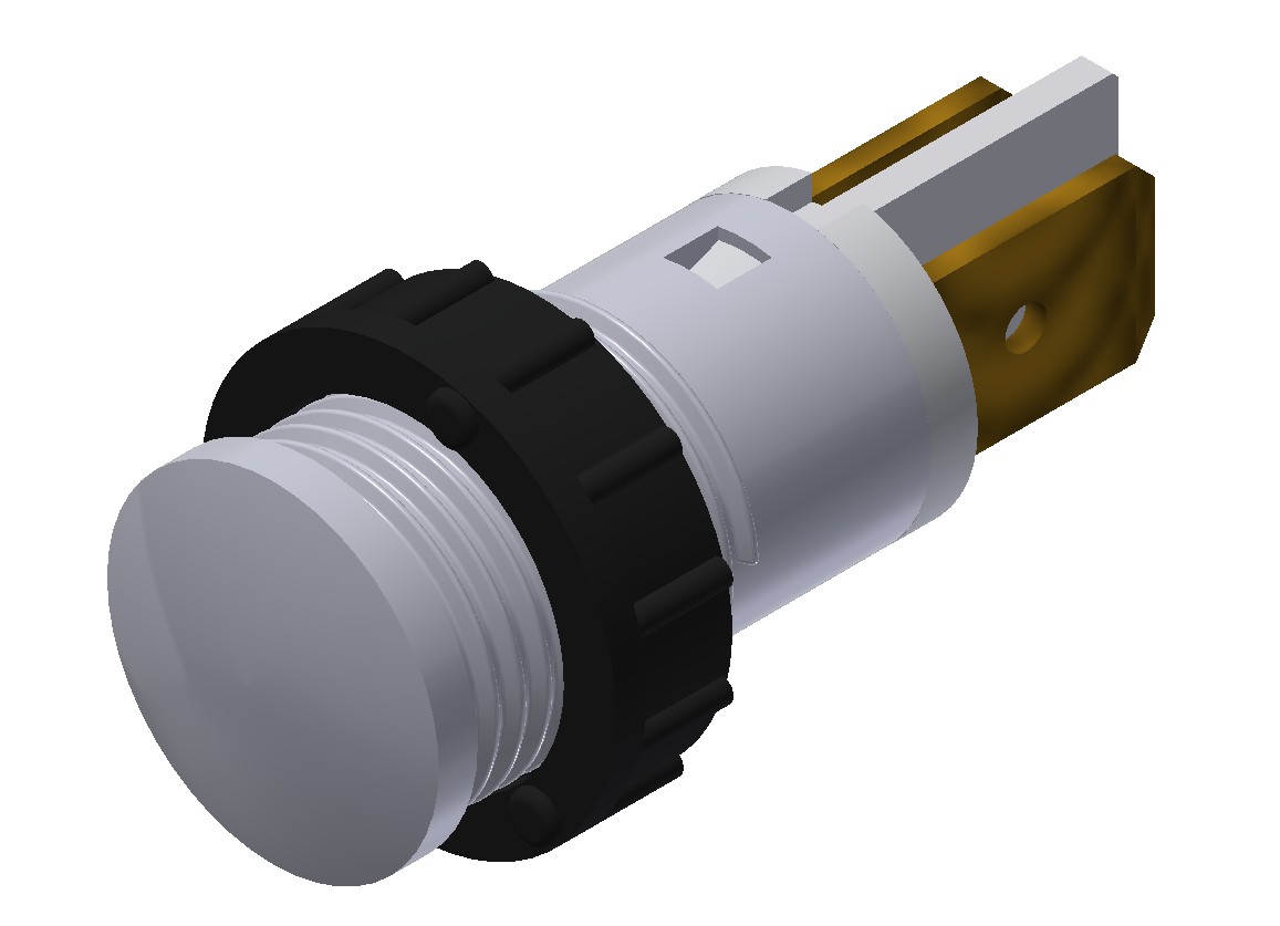 LED panel-mounted light indicator for 12 mm diameter with FASTON connection and nut assembly. The color of the light emitted by the LED is identified by the color of the cable. Operation in AC/DC without the need to polarize the signal. Possibility to request it with mounted or separate nut. Available with incandescent, NEON/FLUO or LED lamp. Available in the voltage range 2V-400V. Adaptable to different applications: household appliances, HoReCa instrumentation, HVAC-R, lighting, industrial automation, electrical panels, mobility