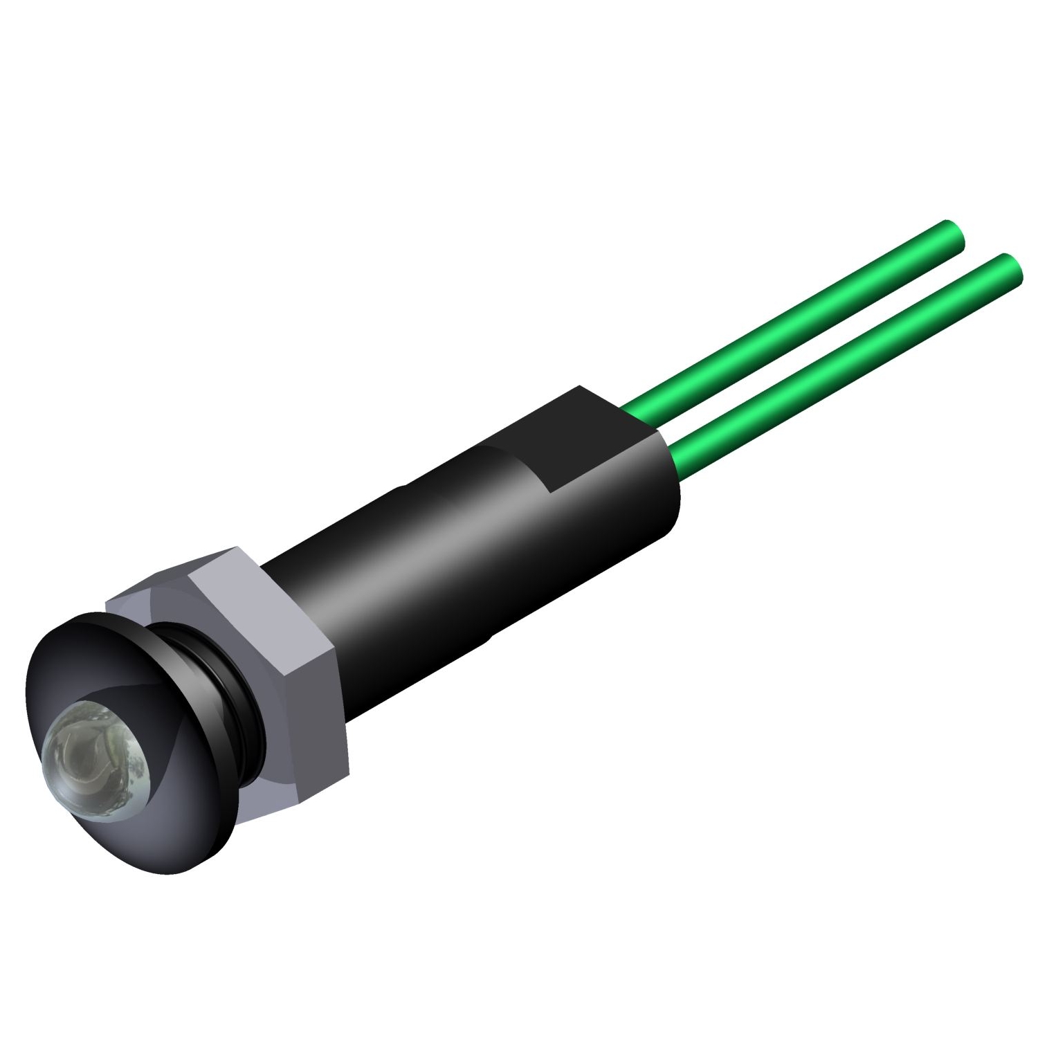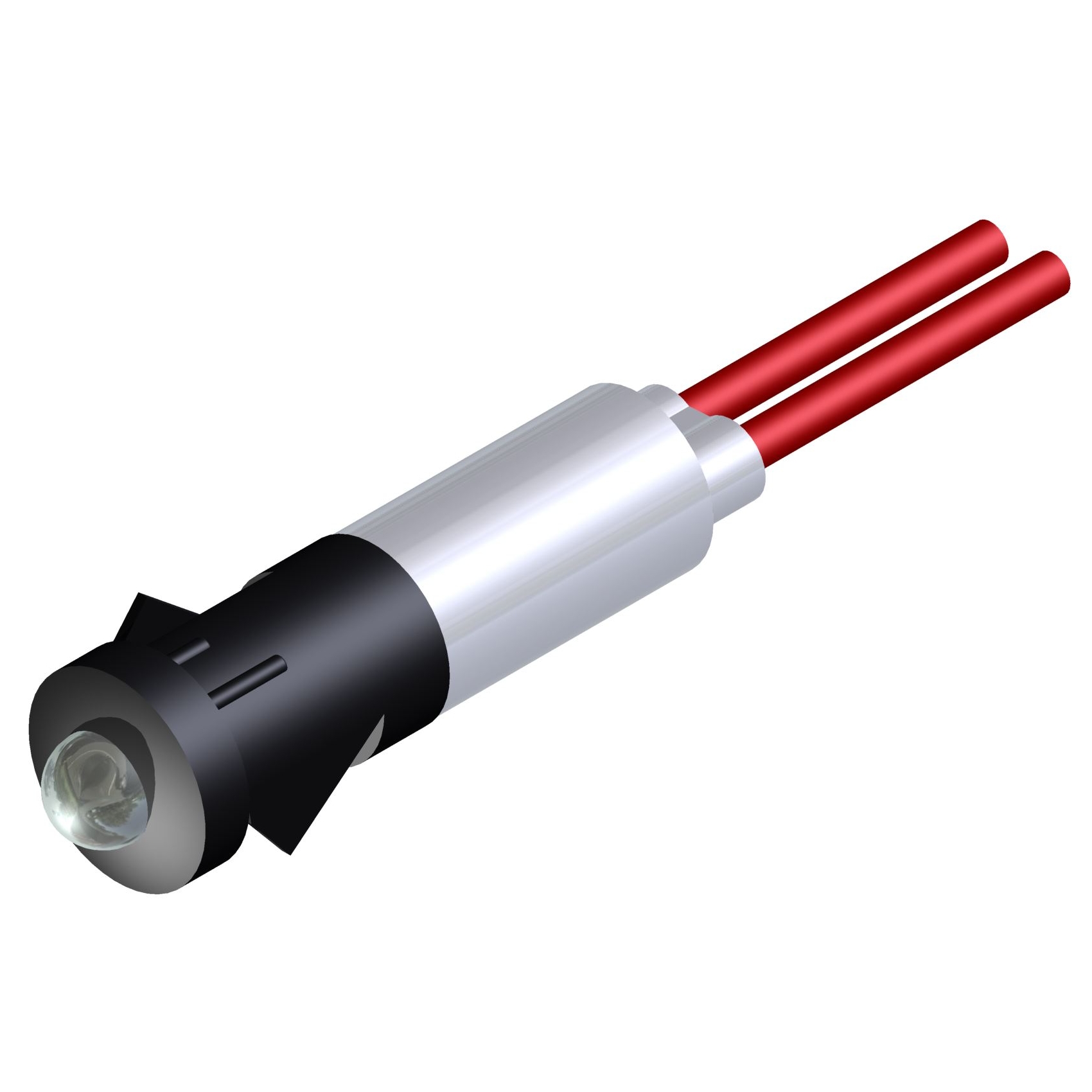 LED panel-mounted light indicator for 6 mm diameter with cable connectionnection and nut assembly. The color of the light emitted by the LED is identified by the color of the ring positioned around the LED. Operation in AC/DC, with polarized signal. Possibility to request it with mounted or separate nut. Available with incandescent, NEON/FLUO or LED lamp. Available in the voltage range 2V-400V. Adaptable to different applications: household appliances, HoReCa instrumentation, HVAC-R, lighting, industrial automation, electrical panels, mobility.